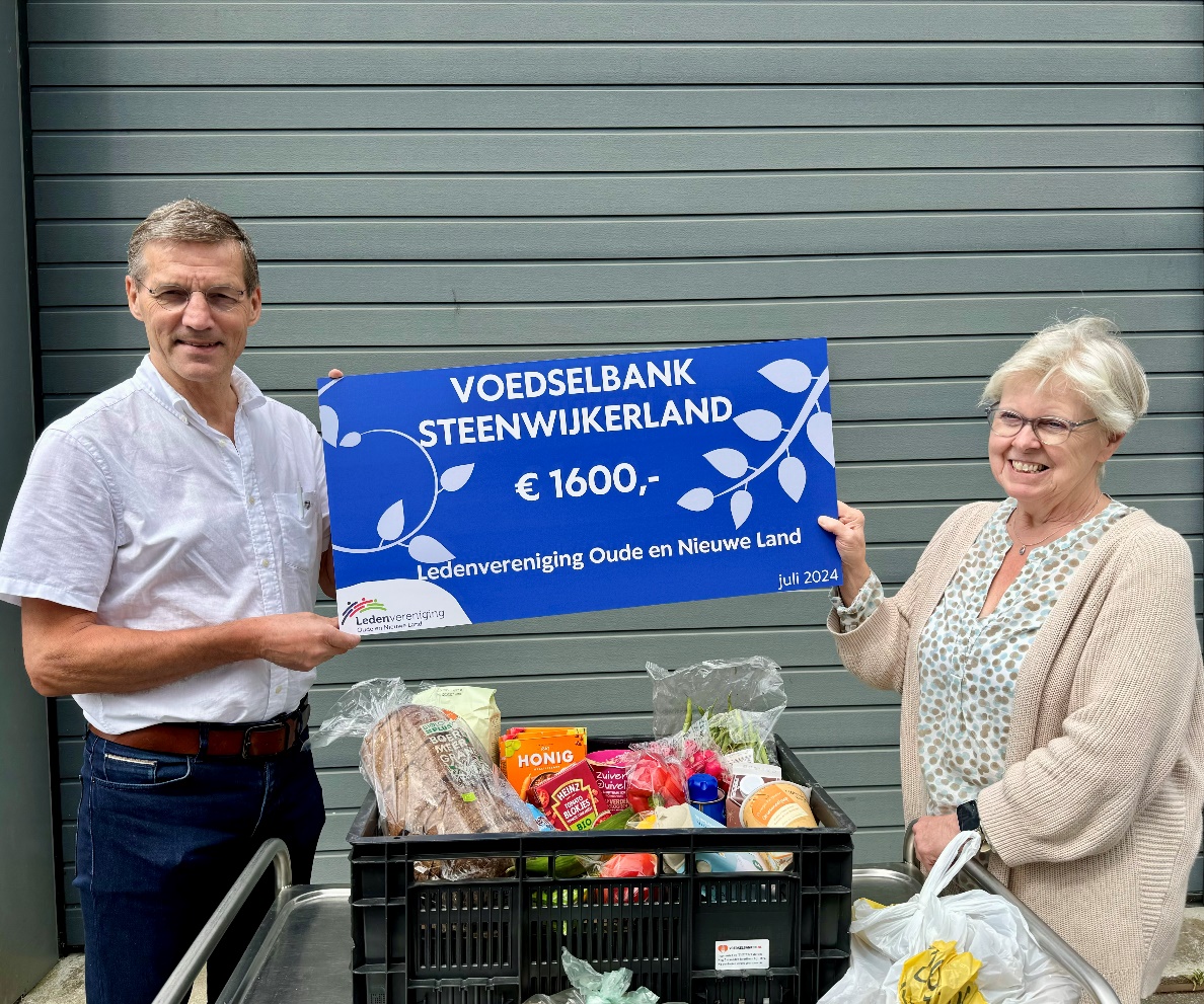 Vandaag ontvingen wij uit handen van Johan Goos, voorzitter van Ledenvereniging Oude en Nieuwe Land, een mooie cheque met een donatie van € 1.600,00. Het geld zal worden besteed aan de inkoop van fruit en groenten. Hartelijk dank namens voedselbankgebruikers en vrijwilligers.